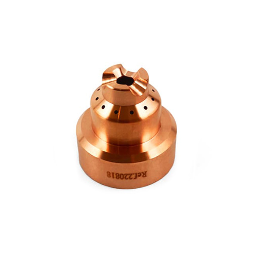 Он защищает сопло от двойной дуги во время прожигов и непреднамеренного контакта с металлической поверхностью. Кроме того, экран обеспечивает подачу защитного вторичного газа на выходе из сопла, а также способствует точному направлению потока плазмы, улучшая качество реза. Конструкция защитного экрана позволяет ему выдерживать высокие температуры, сохраняя свою структуру.