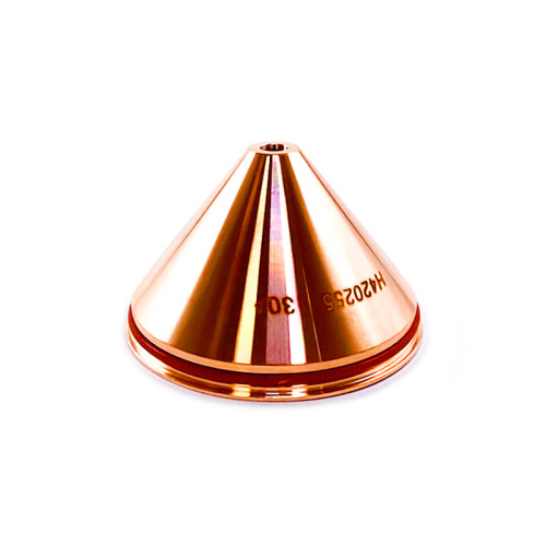 Он защищает сопло от двойной дуги во время прожигов и непреднамеренного контакта с металлической поверхностью. Кроме того, экран обеспечивает подачу защитного вторичного газа на выходе из сопла, а также способствует точному направлению потока плазмы, улучшая качество реза. Конструкция защитного экрана позволяет ему выдерживать высокие температуры, сохраняя свою структуру.
